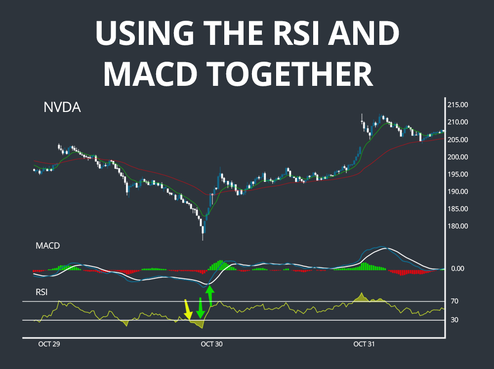 There are two common trading strategies that incorporate the RSI with each of two other popular indicators – the moving average convergence divergence (MACD) and moving average crossover.