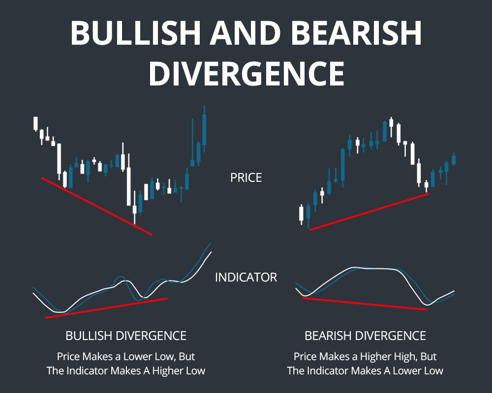 Divergence alone cannot confirm a reversal, but there are additional signs in the stochastics oscillator that can provide information. The most important is whether the oscillator breaks above 50 in the case of a potential bullish reversal or below 50 in the case of a potential bearish reversal. If this occurs, it is significantly more likely that a reversal will follow since this indicates that the stock is trading above or below the average of its price over the 14-interval period.