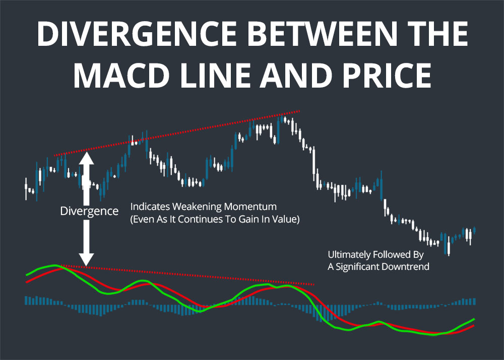 Divergence between the stock price and the MACD can also be informative as a way to determine whether momentum is wearing off or building. For example, consider a stock with a falling price and an MACD that is growing more negative, indicating downside momentum. The stock price may continue to push lower while the MACD line inflects and begins to push upwards towards zero, thus indicating that the downside momentum is decreasing even though the stock price has not yet exhibited positive gains. The same divergence indication can be applied to a stock that is gaining in price but losing upside momentum.