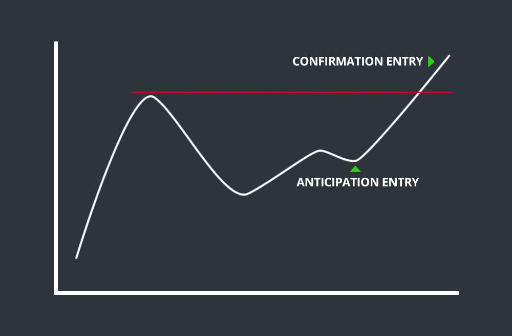 When planning a trade, there are two basic approaches. You can anticipate a move or you can wait for confirmation. Both methods have their pros and cons. Anticipation can provide better entries with less certainty whereas waiting for confirmation provides higher certainty at the expense of a later entry.