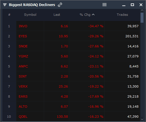 INVO, EYES, SNDE, YGMZ, ANPC, SINT, VERX, EARS, ALTO, QDEL