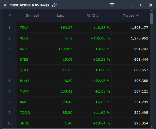 Most Active Big Board Stocks TSLA, VCIG, NVDA, AAPL, SPY, AMD, AMZN, MSFT, QQQ, INTC…