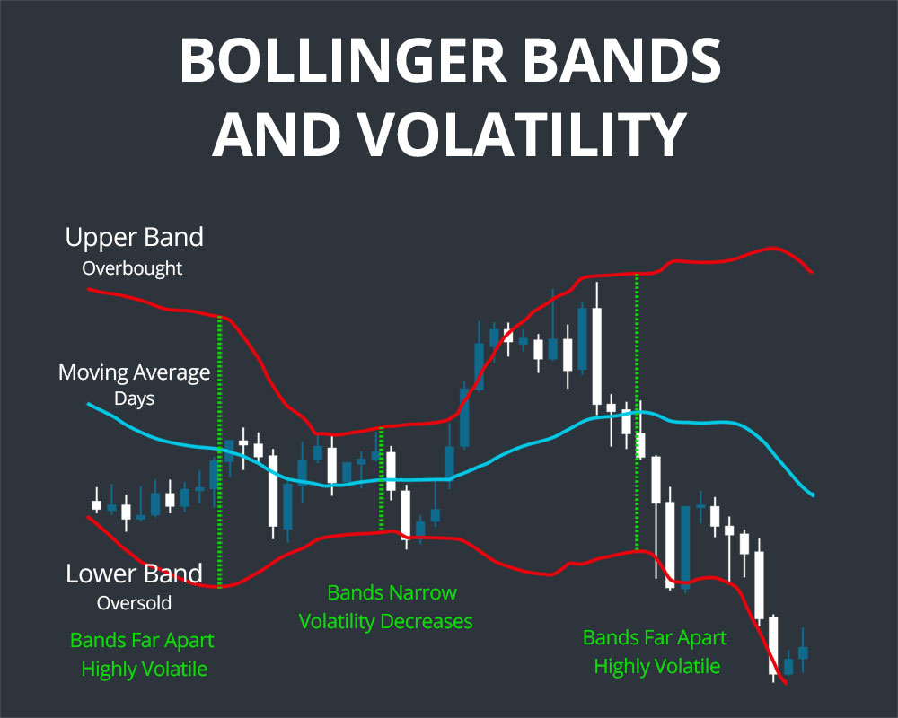Bollinger Bands are above all else an indicator of volatility. When the price of a security is highly volatile, the upper and lower bands will be far apart from one another, while the bands will narrow as price volatility decreases. In addition, many traders use Bollinger Bands to identify overbought and oversold conditions in the market. In this case, when the price approaches the upper band the stock is thought to be overbought, while when the price approaches the lower band it is thought to be oversold.