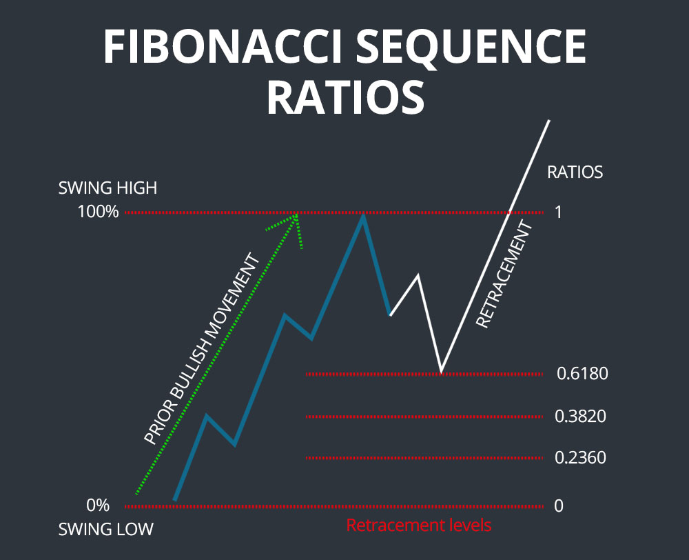 Fibonacci retracements are based on the Fibonacci sequence, in which each number in the sequence can be added to the previous number to produce the following number in the sequence. Dividing any number in the sequence by the following number yields 1.6180 – known as the Golden Ratio – while dividing any number by its predecessor yields 0.6180. Dividing any number in the sequence by a number two positions in advance yields 0.3820, while dividing any number by a number three positions in advance yields 0.2360. These ratios emanating from the Fibonacci sequence are found throughout nature, mathematics, and architecture.
