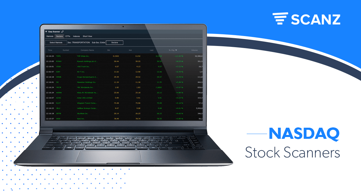 The NASDAQ is home to some of the most important growth stocks in the market today. So, it makes sense that you might want to focus your trading efforts specifically on this exchange. With Scanz, you can target your screens to search only for stocks on a specific market, like the NASDAQ. In this guide, we’ll show you how to design simple NASDAQ screeners using the Easy and Pro Scanners.