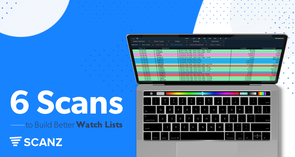 The Pro Scanner in Scanz is an effective tool for building a wide variety of watchlists or adding stocks to your existing watchlists. Let’s take a look at 6 scans that you can run to start building more effective watchlists.