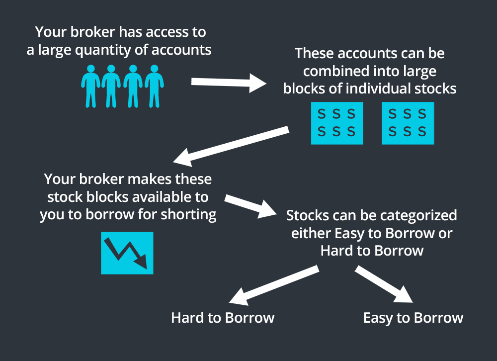 In order to initiate a short position, you need to make sure there are shares available to borrow. Certain stocks are considered “easy-to-borrow,” meaning it’s easy to find shares to short. Other stocks are considered “hard-to-borrow” meaning it’s more difficult to find shares to short.