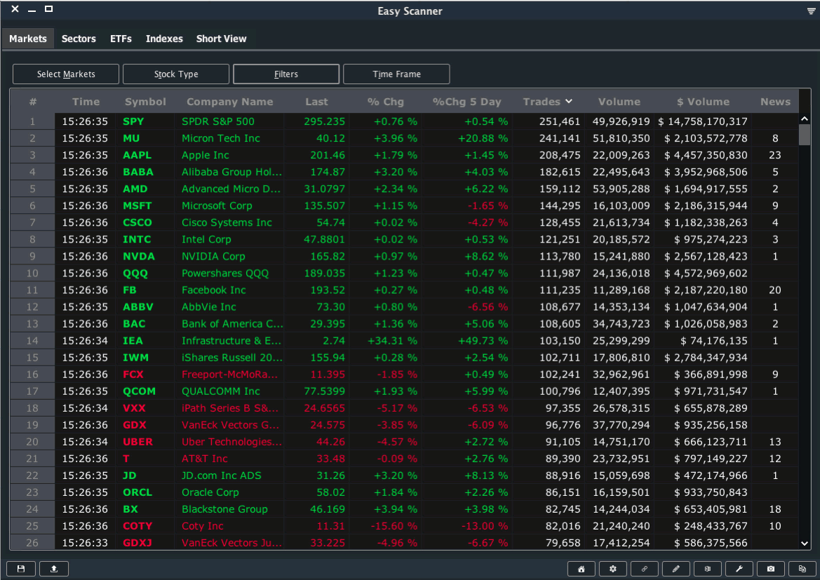 Get a bird’s eye view of the entire stock market to see where the real action is. Easy Scanner brings the action right to you in one simple window – thousands of stocks updating in real time.